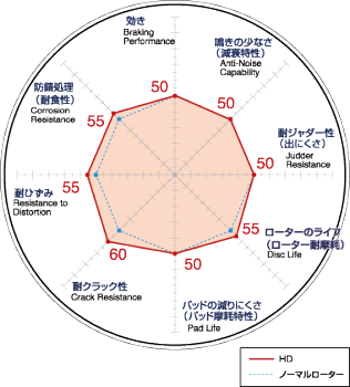 ※熱処理ローターの表面は焦げた色になっておりますが、ひとたび使用するとその焦げた表面はパッドによって削られ、通常の鋳鉄の素地の色に変わります。